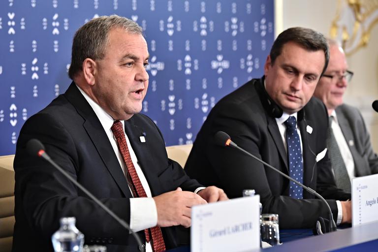 Photo Rastislav Polak eu ec eu2016sk slovakia pressk council presidency reduta vivaeuropaconcert castle danubiana bratislava airport cityhall agrifish summitbratislava2016 cost fac parliamentarysummit Press Conference - Bratislava Informal Parliamentary Summit 2016-10-07 (30057425402).jpg House of Representatives of Malta Mr Angelo Farrugia Speaker - National Council of the Slovak Republic Mr Andrej Danko Speaker Of The National Council of The Slovak Republic - Estonian Parliament Mr Eiki Nestor Photo Rastislav Polak https //www flickr com/photos/142675453 N02/30057425402/ Press Conference - Bratislava Informal Parliamentary Summit_2016-10-07 2016-10-07 13 20 https //www flickr com/people/142675453 N02 EU2016 SK cc-zero eu2016sk https //flickr com/photos/142675453 N02/30057425402 2016-10-13 22 31 49 cc-zero Slovak Presidency of the Council of the European Union 2016 Politicians of Europe |