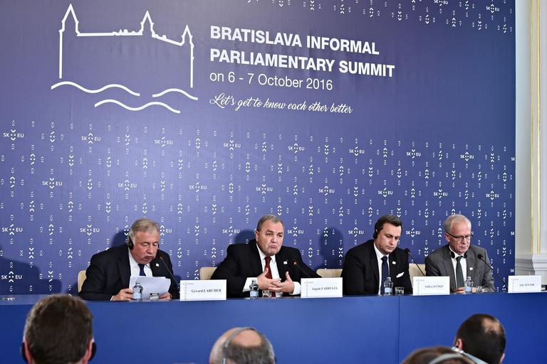 Photo Rastislav Polak eu ec eu2016sk slovakia pressk council presidency reduta vivaeuropaconcert castle danubiana bratislava airport cityhall agrifish summitbratislava2016 cost fac parliamentarysummit Press Conference - Bratislava Informal Parliamentary Summit 2016-10-07 (30057418232).jpg French Senate Mr Gérard Larcher President - House of Representatives of Malta Mr Angelo Farrugia Speaker - National Council of the Slovak Republic Mr Andrej Danko Speaker Of The National Council of The Slovak Republic- Estonian Parliament Mr Eiki Nestor Photo Rastislav Polak https //www flickr com/photos/142675453 N02/30057418232/ Press Conference - Bratislava Informal Parliamentary Summit_2016-10-07 2016-10-07 13 46 https //www flickr com/people/142675453 N02 EU2016 SK cc-zero eu2016sk https //flickr com/photos/142675453 N02/30057418232 2016-10-13 22 31 14 cc-zero Slovak Presidency of the Council of the European Union 2016 Politicians of Europe |