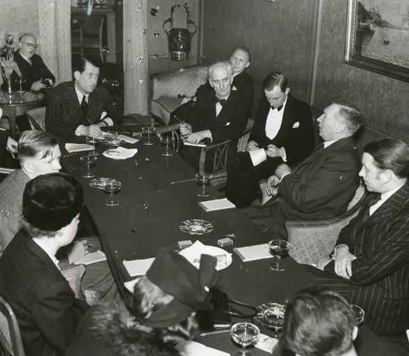Keywords: vårslipp ntbs krigsarkiv ntbskrigsarkiv andre verdenskrig andreverdenskrig presse vårslipp 2012 vårslipp2012 norsk prese i sverige under krigen norskpreseisverigeunderkrigen people Professor Worm-Müller uttaler seg til Stockholmpressen de 18. mars 1944 under et besøk professoren avla I Sverige hvor han redegjorde for den norske regjerings virksomhet og nordmennenes krigsinnsats i en serie møter såvel for nordmenn som svensker over hele landet. På bildet ser en, ved siden av professoren, den norske presseattasje i Stockholm, redaktør Jens Schive. Professor Worm Müller uttaler seg til Stockholmspressen på et pressemøte 18/3-44. RA/PA-1209/Uc/66/7/S 5005B Professor Worm-Müller uttaler seg til Stockholmpressen de 18. mars 1944 under et besøk professoren avla I Sverige hvor han redegjorde for den norske regjerings virksomhet og nordmennenes krigsinnsats i en serie møter såvel for nordmenn som svensker over hele landet. På bildet ser en, ved siden av professoren, den norske presseattasje i Stockholm, redaktør Jens Schive. Professor Worm Müller uttaler seg til Stockholmspressen på et pressemøte 18/3-44. RA/PA-1209/Uc/66/7/S 5005B |