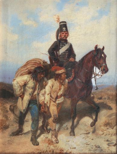Keywords: Preussischer-husar-mit-gefangenen huenten.jpg Artwork Creator Emil Hünten The horseman wears a uniform from the Prussian Hussar's regiment von Ruesch or 1862 1867 Oil on canvas cm 32 24 object history The painting was in Lund/Sweden later offered by Auktionshaus Stahl in Hamburg/Germany credit line http //www auktionshaus-stahl de/catalogue-archiv php lotnr 50 katalog 25 Auktionshaus Stahl 23 02 2013 lot 50 PD-old-100 DEFAULTSORT Hunten Emil; Prussian Hussar with Captives; Stahl 2013 Paintings by Emil Hünten Images from Auktionshaus Stahl Hussars of Prussia |