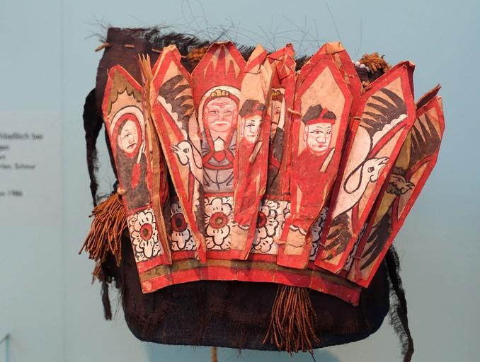 Keywords: Priest's hat, Yao (Mien) people, Northern Thailand, collected in 1986 - Ethnological Museum, Berlin - DSC01326.JPG en Exhibit in the Ethnological Museum Berlin Germany Photography was permitted in the museum without restriction 2014-11-11 08 10 39 own Daderot other versions cc-zero Thailandabteilung in Ethnological Museum Berlin Yao paintings in the Ethnological Museum Berlin Uploaded with UploadWizard |