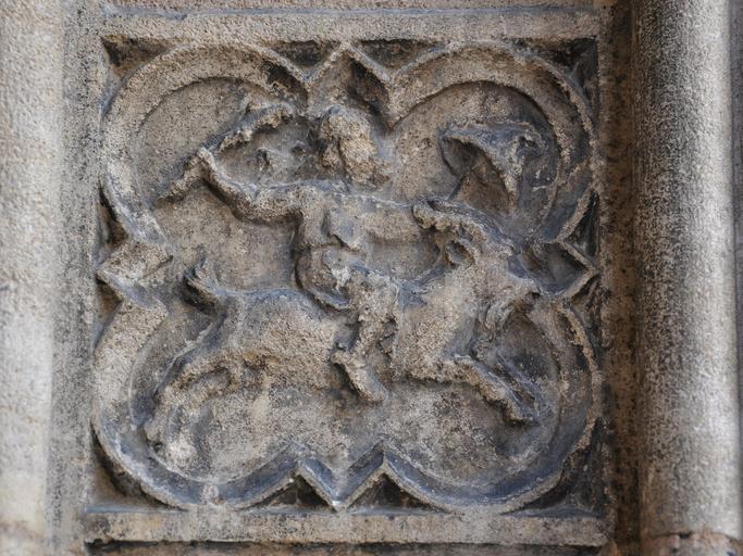 | Keywords: Primatiale Saint-Jean Lyon Ext 250709 17.jpg fr Médaillon décorant un piédroit d'un portail de la primatiale Saint-Jean de Lyon début du 14ème siècle own Vassil 2010-12-29 Cc-zero West portals of Cathédrale Saint-Jean de Lyon People with goats in art Reliefs of goats |