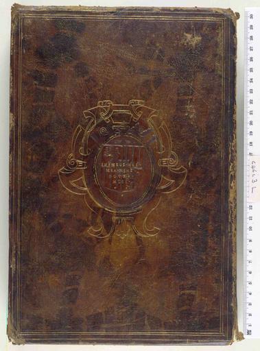 Keywords: Primo Volume delle Navigationi et Viaggi - Lower cover (c46i3).jpg Style Armorial Mottoes; Caption Lower cover; Colour Brown; Edge Plain exhibition history Decorative Technique Marbled Tooled in gold; Cover Material Calf third quarter century Paris Maioli binding group III G D Hobson Maioli Canevari and others p 95 n LIX There is another coat of arms belonging to Antoine Duc de Grammont tooled in blind in the centre It looks as if powdered gold has been applied to the surface of the leather but it is very faded and difficult to distinguish object history Text 1550; Venice; Mahieu Thomas Grammont Antoine duc de d1678 object type Cc-zero place of creation Binding France place of discovery Unspecified British Library image http //www bl uk/catalogues/bookbindings/LargeImage aspx RecordId 020-000006864 ImageId ImageId 43037 Copyright BL Primo Volume delle Navigationi et Viaggi Uploaded with GWToolset Primo Volume delle Navigationi et Viaggi - Lower cover c46i3 http //www webarchive org uk/bldatasets/bindings/7582_4 jpg Bookbinding 16th-century bookbinding British Library Bookbindings |