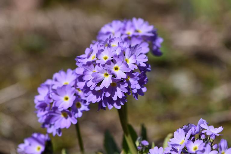 Keywords: primrose drumstick blue flowers spherical shape garden spring spring flower close
