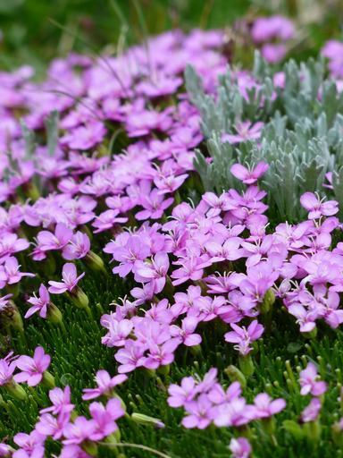 Keywords: primula catchfly blossom bloom pink flowers silene acaulis moss campion campion silene carnation family caryophyllaceae pink cushion upholstery alpine flower alpine plant