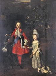 Keywords: Prince James Francis Edward Stuart and Princess Louisa Maria Theresa 1690-99.jpg Portrait of Prince James Francis Edward Stuart and Princess Louisa Maria Theresa - 1690 1699 oil canvas cm 196 146 8 Institution Royal Collection of the United Kingdom object history accession number RCIN 409147 http //www royalcollection org uk/eGallery/object asp object 409147 row 0 detail about The Royal Collection other versions 80px 80px PD-old-100 Baroque paintings in the Royal Collection of the United Kingdom James Francis Edward Stuart Louisa Maria Teresa Stuart 17th-century oil portraits of children at full length 1690s portrait paintings 17th-century family portraits 17th-century greyhounds in art Jabots in art Portrait paintings of standing children Portrait paintings of children with dogs Portraits of siblings Portraits with 2 persons Portraits with greyhounds Portrait paintings of men holding tricorne hats Red clothing in art male Males with red coats in art Sashes of chivalric orders in portrait paintings Satin clothing in art Fontanges |