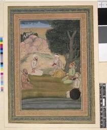 Keywords: Prince Parvíz visiting a saint with attendants. According to reg' man reading out loud to others..jpg en Album leaf removed from album On paper Recto Painting Devotion Prince Parvíz visiting a saint with attendants According to reg' man reading out loud to others Verso Calligraphy 17thC Late http //www britishmuseum org/research/search_the_collection_database/search_object_details aspx objectid 231932 partid 1 searchText mughal fromADBC ad toADBC ad numpages 10 images on orig 2fresearch 2fsearch_the_collection_database aspx currentPage 15 Mughal Style PD-Art Uploaded with UploadWizard Parviz |