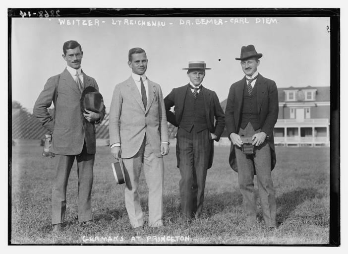Keywords: Princeton 4389405427 f7fa01de4f o.jpg en wikipedia 2012 January 10 Bain News Service publisher Germans at Princeton University -- Weitzer - Lt Reichenau - Dr Bemer - Carl Diem in 1913 between ca 1910 and ca 1915 1 negative glass ; 5 x 7 in or smaller Notes Title from unverified data provided by the Bain News Service on the negatives or caption cards Forms part of George Grantham Bain Collection Library of Congress Format Glass negatives Rights Info No known restrictions on publication Repository Library of Congress Prints and Photographs Division Washington D C 20540 USA hdl loc gov/loc pnp/pp print General information about the Bain Collection is available at hdl loc gov/loc pnp/pp ggbain Persistent URL hdl loc gov/loc pnp/ggbain 14549 Call Number LC-B2- 2868-14 ggbain 14549 Transferred from http //en wikipedia org en wikipedia 2010-02-27 Original uploader was Richard Arthur Norton 1958- at http //en wikipedia org en wikipedia PD-Bain Original upload log page en wikipedia Princeton_4389405427_f7fa01de4f_o jpg 2010-02-27 00 39 Richard Arthur Norton 1958- 1024×747× 134588 bytes <nowiki>Bain News Service publisher Germans at Princeton University -- Weitzer - Lt Reichenau - Dr Bemer - Carl Diem in 1913 PD-US between ca 1910 and ca 1915 1 negative glass ; 5 x 7 in or smaller Notes Title from unveri</nowiki> Carl Diem |