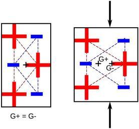 Keywords: Principe piezoelectricite.svg en Principle of piezoelectricity sensor when the crystal is pressed the barycenter of negative charges is different from the barycenter of positive charges; actuator when a voltage is applied the barycenters are pulled away creating a deformation fr Principe de la piézoélectricité capteur lorsque le cristal est comprimé le barycentre des charges négatives est différent du barycentre des charges positives ; actionneur lorsqu'une tension est appliquée les barycentres sont décalés créant une déformation own Cdang 2010-03-19 inkscape Piezoelectricity |