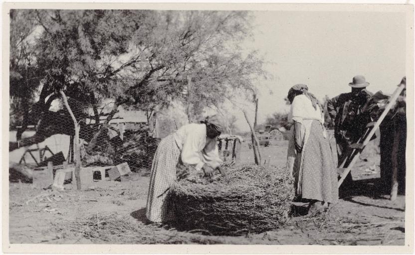 | Keywords: smithsonian institution smithsonianinstitution national museum of the american indian nationalmuseumoftheamericanindian Photographer: Edward H. Davis (Edward Harvey Davis/E. H. Davis), Non-Indian, 1862-1951 Subject: Alena Levi (Helena Levi/Mrs. Louis Levy), Desert Cahuilla [Torres-Martinez Reservation/Torres-Martinez Band], ca. 1853-ca. 1922 Date Created: October 30, 1917 Catalog Number: P02323 Format: Silver gelatin print Dimensions: 3.25 x 5 in. Collection History: Edward H. Davis owned a ranch outside San Diego, California, and became fascinated with local Indian people. The collection of Native objects he developed attracted the attention of George Heye, who purchased many items from Davis and hired him as a field collector in 1916. Photographs by Davis from southern California and northern Mexico probably accompanied the objects he sold to or collected for MAI. Description: In a yard, Alena Levi (Levy), on left, adds arrow weed to the bottom of a large grainary basket (072271.000). Another woman and a man look on. According to Edward H. Davis, the basket did not have a bottom, but he asked Levi to add one before he bought the item from her. Place: Tova (Agua Dulce), Torres Martinez Reservation; Riverside County; California; USA Culture/People: Desert Cahuilla [Torres-Martinez Reservation/Torres-Martinez Band] Culture Hierarchy: Desert Cahuilla>Desert Cahuilla [Torres-Martinez Reservation/Torres-Martinez Band] Persistent URL:http://www.americanindian.si.edu/searchcollections/item.aspx?irn=323165 Repository:National Museum of the American Indian View more collections from the Smithsonian Institution. Photographer: Edward H. Davis (Edward Harvey Davis/E. H. Davis), Non-Indian, 1862-1951 Subject: Alena Levi (Helena Levi/Mrs. Louis Levy), Desert Cahuilla [Torres-Martinez Reservation/Torres-Martinez Band], ca. 1853-ca. 1922 Date Created: October 30, 1917 Catalog Number: P02323 Format: Silver gelatin print Dimensions: 3.25 x 5 in. Collection History: Edward H. Davis owned a ranch outside San Diego, California, and became fascinated with local Indian people. The collection of Native objects he developed attracted the attention of George Heye, who purchased many items from Davis and hired him as a field collector in 1916. Photographs by Davis from southern California and northern Mexico probably accompanied the objects he sold to or collected for MAI. Description: In a yard, Alena Levi (Levy), on left, adds arrow weed to the bottom of a large grainary basket (072271.000). Another woman and a man look on. According to Edward H. Davis, the basket did not have a bottom, but he asked Levi to add one before he bought the item from her. Place: Tova (Agua Dulce), Torres Martinez Reservation; Riverside County; California; USA Culture/People: Desert Cahuilla [Torres-Martinez Reservation/Torres-Martinez Band] Culture Hierarchy: Desert Cahuilla>Desert Cahuilla [Torres-Martinez Reservation/Torres-Martinez Band] Persistent URL:http://www.americanindian.si.edu/searchcollections/item.aspx?irn=323165 Repository:National Museum of the American Indian View more collections from the Smithsonian Institution. |