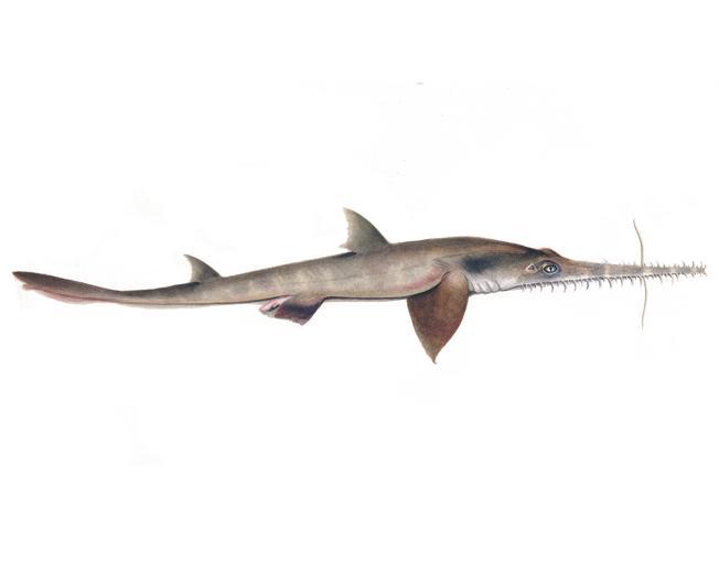 Keywords: Pristiophorus cirratus.jpg Longnose Saw shark Pristiophorus cirratus watercolour on paper sketch from the Sketchbook of fishes by Van Diemonian Tasmanian artist and convict William Buelow Gould 1801 - 1853 <br>Produced c1832 as part of a thirty-six image still life sketchbook of fishes while Gould was a convict on Sarah Island at the Macquarie Harbour Penal Station Probably done for Dr William De Little <br>Actual size 185 x 227 mm This version is cropped to the main image Reproduced with kind permission of the Allport Library and Museum of Fine Arts Tasmanian Archive and Heritage Office <br>The original may be found at http //catalogue statelibrary tas gov au/item/ id 80818 ~ 1832 William Buelow Gould 1801 - 1853 <br>Reproduction by the Allport Library and Museum of Fine Arts Tasmanian Archive and Heritage Office Reuse other than for private research/study requires permission from the Tasmanian Archive and Heritage Office <br>Please follow the link to the original above or see http //www archives tas gov au/guides/list/bg023 for details <br> PD-old thumb left William Buelow Gould Collections of the Tasmanian Archive and Heritage Office Still life paintings of fish Pristiophorus cirratus Taken with Hasselblad H3D II-39 |