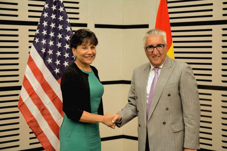 | Keywords: Pritzker Cretz Accra 2014-05-18 P02 B001b.jpg en <br /> Person left Penny Sue Pritzker U S Secretary of Commerce <br />Person right Gene A Cretz U S Ambassador to Ghana<br /> Location Accra https //www facebook com/USEmbassyGhana/photos/a 567717653343988 1073741926 146328372149587/567717790010641/ type 3 theater Facebbok profile of the US Embassy in Ghana official photographer of the US government 2014-05-18 Accra in 2014 Visit of the Secretary of Commerce of the United States to Ghana Mai 2014 Gene Cretz PD-USGov |
