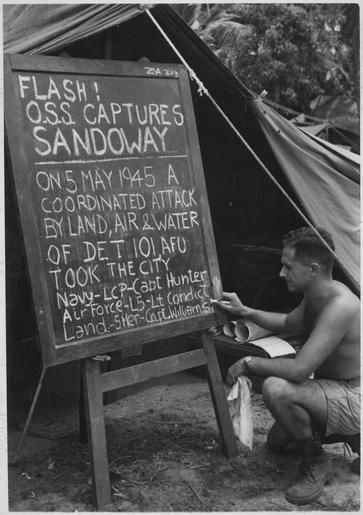| Keywords: Private First Class Edeleanu prints news bulletin on bulletin board outside Intelligence tent of Kyaukpyu Camp the... - NARA - 540055.tif Scope and content General notes Use War and Conflict Number 1161 when ordering a reproduction or requesting information about this image 540055 Local identifier 226-FPK-45 352 Joint Chiefs of Staff Office of Strategic Services Field Photographic Branch 01/04/1943 - 10/01/1945 Still Picture Records Section Special Media Archives Services Division NWCS-S National Archives at College Park 8601 Adelphi Road College Park MD 20740-6001 1945 - 1945 Record group Record Group 226 Records of the Office of Strategic Services 1919 - 2002 Record group ARC 553 OSS Field Station Kandy Ceylon compiled 1945 - 1945 Series ARC 540049 File unit File unit ARC Variant control numbers NAIL Control Number NWDNS-226-FPK-45 352 yes Other versions NARA-cooperation PD-USGov 1945 History of Sri Lanka Office of Strategic Services |