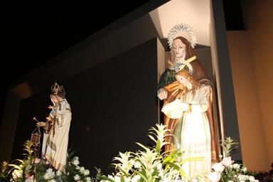 | Keywords: roquetas de mar roquetasdemar fiestas roquetas de mar fiestasroquetasdemar fiestas santa ana roquetas de mar fiestassantaanaroquetasdemar fiestas el puerto roquetas de mar fiestaselpuertoroquetasdemar procesión santa ana procesiónsantaana El 26 de julio volvió a ser un día grande para El Puerto de Roquetas de Mar. La procesión en honor a la Virgen del Carmen y Santa Ana reunió a miles de personas que arroparon a las imágenes en el recorrido por las calles del barrio. Los vecinos y visitantes vivieron la procesión con intensidad y exaltación, y los vítores a la Virgen y Santa Ana fueron constantes. Por la mañana se celebraba la Santa Misa solemne en el tercer y último día del Triduo. Por la tarde, pasadas las 18 horas, comenzaba la procesión. Las imágenes estuvieron acompañadas por la música de la Banda de Música de Loja y de la Unión Musical Roquetas de Mar. Desde la Parroquia de Santa Ana se llegaba a la Calle El Faro y después hasta la explanada del Faro de Roquetas de Mar. En este punto se llevó a cabo una de las principales tradiciones de estas fiestas, el lavado de cara a Santa Ana. Gabriel Amat, alcalde de Roquetas de Mar, hizo el lavado, así como Marta López, que fue designada en el sorteo. Juani Cruz, también por sorteo, fue la persona que portó el agua para el lavado. Después la procesión continuó en dirección al muelle pesquero bordeando el Castillo de Santa Ana para iniciar la procesión marítima hacia Aguadulce. La imagen de la Virgen del Carmen procesionó en el barco Salvador El Fortuna, mientras que la de Santa Ana lo hizo en el Rompemares. Antes de llegar a Aguadulce se lanzaron cohetes en honor a la Virgen y a Santa Ana. En el Puerto Deportivo de Aguadulce se rezó a las imágenes, y se partió de nuevo hacia el Puerto de Roquetas de Mar. En alta mar también se lanzaron flores en memoria de los pescadores. Pasadas las 21 horas la procesión volvía a tierra y recorría la zona del ferial en dirección hacia la Iglesia del Puerto. Una vez en este punto, y con la presencia de miles de personas en la plaza, se lanzaba un espectacular castillo de fuegos artificiales con el que se ponía fin a la procesión. Antes de regresar las imágenes al templo se interpretó el himno de España que sirvió como despedida. El 26 de julio volvió a ser un día grande para El Puerto de Roquetas de Mar. La procesión en honor a la Virgen del Carmen y Santa Ana reunió a miles de personas que arroparon a las imágenes en el recorrido por las calles del barrio. Los vecinos y visitantes vivieron la procesión con intensidad y exaltación, y los vítores a la Virgen y Santa Ana fueron constantes. Por la mañana se celebraba la Santa Misa solemne en el tercer y último día del Triduo. Por la tarde, pasadas las 18 horas, comenzaba la procesión. Las imágenes estuvieron acompañadas por la música de la Banda de Música de Loja y de la Unión Musical Roquetas de Mar. Desde la Parroquia de Santa Ana se llegaba a la Calle El Faro y después hasta la explanada del Faro de Roquetas de Mar. En este punto se llevó a cabo una de las principales tradiciones de estas fiestas, el lavado de cara a Santa Ana. Gabriel Amat, alcalde de Roquetas de Mar, hizo el lavado, así como Marta López, que fue designada en el sorteo. Juani Cruz, también por sorteo, fue la persona que portó el agua para el lavado. Después la procesión continuó en dirección al muelle pesquero bordeando el Castillo de Santa Ana para iniciar la procesión marítima hacia Aguadulce. La imagen de la Virgen del Carmen procesionó en el barco Salvador El Fortuna, mientras que la de Santa Ana lo hizo en el Rompemares. Antes de llegar a Aguadulce se lanzaron cohetes en honor a la Virgen y a Santa Ana. En el Puerto Deportivo de Aguadulce se rezó a las imágenes, y se partió de nuevo hacia el Puerto de Roquetas de Mar. En alta mar también se lanzaron flores en memoria de los pescadores. Pasadas las 21 horas la procesión volvía a tierra y recorría la zona del ferial en dirección hacia la Iglesia del Puerto. Una vez en este punto, y con la presencia de miles de personas en la plaza, se lanzaba un espectacular castillo de fuegos artificiales con el que se ponía fin a la procesión. Antes de regresar las imágenes al templo se interpretó el himno de España que sirvió como despedida. |