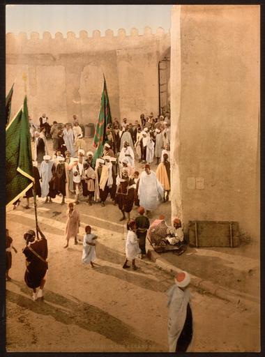 | Keywords: Procession, Kairwan, Tunisia WDL2517.png Artwork ru П оцессия Каи ван Тунис fr Procession Kairouan Tunisie en Procession Kairwan Tunisia zh 游行,凯鲁万,突尼斯 pt Procissão Kairwan Tunísia ar موكب، القيروان، تونس ru Этот цветной снимок шествия в Каи ване Тунис относится к се ии Виды а хитекту ы и люди Туниса входящей в каталог компании Дет ойт Фотог афик Кампани В свое в емя Каи ван являлся политическим и елигиозным цент ом Туниса почитавшимся как святейший го од ст аны Б итанский художник и писатель Г эхэм Пет и 1859-1940 гг в своей книге 1908 года Тунис Каи ван и Ка фаген описание и со ок восемь иллюст аций утве ждает что всякий путешественник в Тунисе п осто обязан посетить священный го од Каи ван кото ый он описывает как несомненно самый инте есный го од Туниса - с едоточие я ких к асок света и самобытности Востока в нем воплощаются все самые идеализи ованные п едставления о восточном го оде Дет ойт Фотог афик Кампани была основана в конце 90-х годов XIX века в качестве издательской компании выпускающей фотоп одукцию бизнесменом и издателем из Дет ойта Уильямом А Ливингстоном младшим совместно с фотог афом и фотоиздателем Эдвином Г Хаше ом Они п иоб ели эксклюзивные п ава на использование п оцесса фотох оми ования изоб етенного в Швейца ии Фотох оми ование использовалось для п ев ащения че но-белых фотог афий в цветные и последующей печати фотог афий методом фотолитог афии Благода я этому п оцессу стало возможно массовое п оизводство цветных отк ыток снимков и альбомов для п одажи на аме иканском ынке <br>Па ады и шествия fr Cette gravure photochrome d'une procession à Kairouan en Tunisie provient du catalogue Regards sur l'architecture et la population en Tunisie de la Detroit Photographic Company Kairouan était autrefois le centre politico-religieux de la Tunisie et était considérée comme la ville la plus sacrée du pays Dans son livre de 1908 <em> Tunis Kairouan et Carthage décrites et illustrées par quarante-huit tableaux </em> l'artiste britannique et auteur Graham Petrie 1859 1940 déclarait il est absolument obligatoire pour chaque visiteur à Tunis de se rendre en pèlerinage dans la ville sainte de Kairouan qu'il décrivait comme sans aucun doute la ville la plus intéressante de Tunisie ; éclatante de couleurs scintillante de lumière et grouillante de vie orientale ; elle semble matérialiser tous nos rêves de ville orientale La Société photographique de Detroit était une maison d'édition photographique créée à la fin des années 1890 par l'homme d'affaires et éditeur de Detroit William A Livingstone Jr en association avec le photographe et photo-éditeur Edwin H Husher Ils obtinrent les droits exclusifs d'utilisation du processus suisse Photochrome pour la conversion de photographies noir et blanc en images couleur ainsi que leur impression par photolithographie Cette technique a permis la production en série de cartes postales tirages et albums en couleur vendus sur le marché américain <br>Défilés et processions en This photochrome print of a procession in Kairwan Tunisia is part of Views of Architecture and People in Tunisia in the catalog of the Detroit Photographic Company Kairwan was once the political and religious center of Tunisia and was considered the country's holiest city In his 1908 book <em>Tunis Kairouan Carthage Described and Illustrated by Forty-Eight Paintings</em> the British artist and author Graham Petrie 1859 1940 declared that it is the absolute duty of every visitor to Tunis to make a pilgrimage to the holy city of Kairouan which he described as undoubtedly the most interesting city in Tunisia; glowing with colour scintillating with light and teeming with Oriental life; it seems to realize all one's dreams of an Eastern town The Detroit Photographic Company was launched as a photographic publishing firm in the late 1890s by Detroit businessman and publisher William A Livingstone Jr and photographer and photo-publisher Edwin H Husher They obtained exclusive rights to use the Swiss Photochrom process to convert black-and-white photographs into color images and to print them by means of photolithography This process originated the mass production of color postcards prints and albums for sale to the American market <br>Parades and processions zh 这幅突尼斯凯鲁万游行彩印画是底特律摄影公司书目中 突尼斯建筑与人物风景 的 个部分 凯鲁万曾经是突尼斯政治和宗教中心,并被视为该国 神 的城市 他于1908年出版的书 突尼斯 凯鲁万和迦太基:四十八幅画描绘的景象 中,英国画家兼 家格雷厄姆·皮特里(1859-1940年)称 对于每个突尼斯游客,到 城凯鲁万 是 种 对的义务 他描述道: 凯鲁万无疑是突尼斯 趣的城市;这里色彩斑斓,熠熠生辉,充满 方生活气息;它似乎实现了 座 方城市的 梦想 底特律摄
