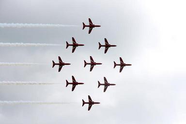 | Keywords: diamond nine diamondnine precision flying precisionflying project 365 project365 raf cosford airshow 2010 rafcosfordairshow2010 rafat red arrows redarrows white background bird animal outdoor Today brought a very early start as we went to the Air Show at RAF Cosford. It's far enough to have to get up early, but not so far as to require an overnight stay. It was an excellent show, right up until about four o'clock where the odd bits of drizzle turned into full on deluge and we got soaked to the skin. That made the three and a half hours in the car less than amusing! Anyway, what's important is that amongst all the great stuff we saw was the first public display of the Reds for 2010. The first display of the season is never the best, and 2010 certainly had a very difficult labour, but it was a superb show nevertheless, and the perfection of this classic diamond nine shows how hard they've been working on getting 'the basics' absolutely spot on. A great show, even with the squelching shoes at the end of it. And now I'll make a start on that work I was supposed to be doing today. :) Today brought a very early start as we went to the Air Show at RAF Cosford. It's far enough to have to get up early, but not so far as to require an overnight stay. It was an excellent show, right up until about four o'clock where the odd bits of drizzle turned into full on deluge and we got soaked to the skin. That made the three and a half hours in the car less than amusing! Anyway, what's important is that amongst all the great stuff we saw was the first public display of the Reds for 2010. The first display of the season is never the best, and 2010 certainly had a very difficult labour, but it was a superb show nevertheless, and the perfection of this classic diamond nine shows how hard they've been working on getting 'the basics' absolutely spot on. A great show, even with the squelching shoes at the end of it. And now I'll make a start on that work I was supposed to be doing today. :) |