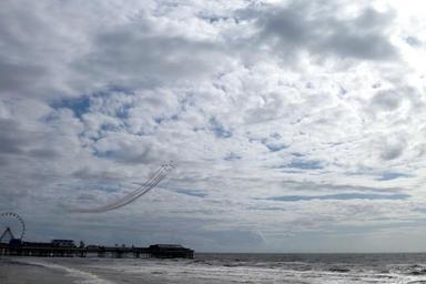 | Keywords: blackpool project 365 project365 rafat red arrows redarrows windy outdoor sky cloud sea It was reasonably last minute as these things go, but we decided that we'd go to Blackpool for the airshow this year. We skipped last years due to the absence of the Reds. Generally we get the train but due to engineering works we decided to drive this time. Further breaking with airshow tradition, I deliberately left my camera at home and only brought my compact. It proved to be a wise decision. We were into a 25 knot headwind blasting at us for three hours and we got drenched in sea spray and I'm still full of salt! The display was excellent. Blackpool have upped their ante a bit this year, and grown it to a two day show, unusually over a Sunday and Monday. We even got offered programmes - not something I've encountered before at Blackpool. The programme was really excellent though, with the Tucano, Breitling wingwalkers, Typhoon, BBMF, Reds and some really interesting historic and oddball stuff. Southport had better sit up and take notice! As I saw the Reds today, here they are as photo of the day. Very, very small. :) And now I think I may shower and tend to my horrible sunburn from the sun that was behind bloody clouds all day. Maybe it was windburn... It was reasonably last minute as these things go, but we decided that we'd go to Blackpool for the airshow this year. We skipped last years due to the absence of the Reds. Generally we get the train but due to engineering works we decided to drive this time. Further breaking with airshow tradition, I deliberately left my camera at home and only brought my compact. It proved to be a wise decision. We were into a 25 knot headwind blasting at us for three hours and we got drenched in sea spray and I'm still full of salt! The display was excellent. Blackpool have upped their ante a bit this year, and grown it to a two day show, unusually over a Sunday and Monday. We even got offered programmes - not something I've encountered before at Blackpool. The programme was really excellent though, with the Tucano, Breitling wingwalkers, Typhoon, BBMF, Reds and some really interesting historic and oddball stuff. Southport had better sit up and take notice! As I saw the Reds today, here they are as photo of the day. Very, very small. :) And now I think I may shower and tend to my horrible sunburn from the sun that was behind bloody clouds all day. Maybe it was windburn... |