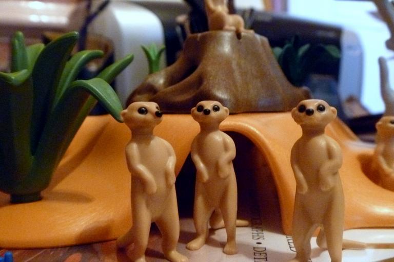 | Keywords: meerkat playmobil playmobil 4853 playmobil4853 project 365 project365 rookery indoor I was going to say that I had another cat picture for you today, but of course meerkats aren't cats but are of the mongoose family! A nice silly photo today. Sue started playing with one of her birthday presents from a few months ago - a Playmobil meerkat rookery (set 4853 for trivia fans). I have to admit that I'm more of a Lego man myself, but you have to love these little guys! :) I was going to say that I had another cat picture for you today, but of course meerkats aren't cats but are of the mongoose family! A nice silly photo today. Sue started playing with one of her birthday presents from a few months ago - a Playmobil meerkat rookery (set 4853 for trivia fans). I have to admit that I'm more of a Lego man myself, but you have to love these little guys! :) |