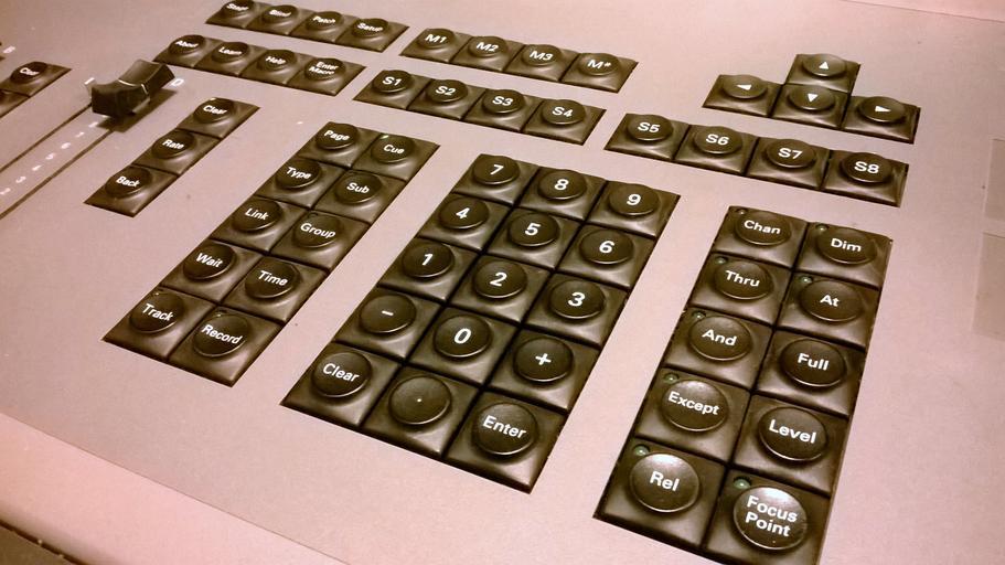| Keywords: dmx controller dmxcontroller etc express etcexpress lighting console lightingconsole project 365 project365 theatre control room theatrecontrolroom indoor text I spent a lot of time today fighting with this DMX lighting controller in the theatre in school. It seemed to have dropped its configuration and wasn't operating any of the lights. Reading the manual, it looks like it has a battery back up that holds the configuration in a semi-volatile RAM, but when this thing has been powered down over the six weeks of summer that has sounded the death knell. After a fairly long fight (that should have taken five minutes) I've got it controlling the static lights across 12 channels, but so far the moving lights elude me. They have built in dimmer boards which I need to research a bit more. I may well keep you posted. :) I spent a lot of time today fighting with this DMX lighting controller in the theatre in school. It seemed to have dropped its configuration and wasn't operating any of the lights. Reading the manual, it looks like it has a battery back up that holds the configuration in a semi-volatile RAM, but when this thing has been powered down over the six weeks of summer that has sounded the death knell. After a fairly long fight (that should have taken five minutes) I've got it controlling the static lights across 12 channels, but so far the moving lights elude me. They have built in dimmer boards which I need to research a bit more. I may well keep you posted. :) |