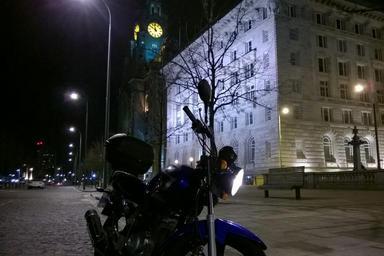 Keywords: back in the saddle backinthesaddle liverpool night riding nightriding project 365 project365 yamaha ybr125 yamahaybr125 It started out grey and drizzly but cleared up nicely by late evening, so I went nuts and broke out the bike for the first ride of the year! It felt fantastic to get out on two wheels, and it was like I'd never been away. It was an odd ride, heading first into town and then out to Bootle. From there I went round Croxteth and up to Stockbridge Village, then back home. Great, great fun. Here I am at the start of the ride down at the Pier Head. I should have stepped back to frame it better, but the bike was running and I didn't want to stray too far. It started out grey and drizzly but cleared up nicely by late evening, so I went nuts and broke out the bike for the first ride of the year! It felt fantastic to get out on two wheels, and it was like I'd never been away. It was an odd ride, heading first into town and then out to Bootle. From there I went round Croxteth and up to Stockbridge Village, then back home. Great, great fun. Here I am at the start of the ride down at the Pier Head. I should have stepped back to frame it better, but the bike was running and I didn't want to stray too far.