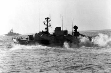 | Keywords: Projects 205-U and 1234-E missile ships - May 1982.jpg en A port beam view of a Soviet project 205-U Osa II missle boat armed with new communications complex and anti-ship missiles complex P-15mod underway In the background is a Soviet project 1234-E Nanuchka II small missile ship ru РКА п оекта 205-У в пе иод п оведения испытаний новейшого комплекса связи и ПКРК П-15мод а заднем плане РК п оекта 1234-Э http //www defenseimagery mil/assetDetails action guid 56066a6afcfeb2f01e69659d57184aef903fb718 en DefenseImagery mil for DN-SN-82-05721 en Photographer's Name Unknown 1982-05 PD-USGov-Military-Navy Uragan class small missle ship Project 205-U missile boats |