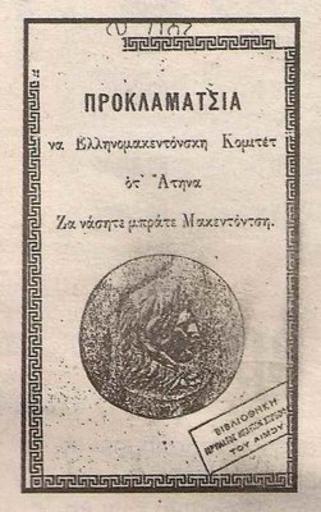 | Keywords: Proklamatsia na Elinomakedonskia komitet.jpg П окламация на Елиномакедонския комитет в Атина написана на бълга ски език с г ъцки букви Заглавие П окламация на Елиномакедонски комитет от Атина За нашите б ате македонци own scanned 1904 - 1908 Ellinomacedonian Comittee PD-old Greek Struggle for Macedonia Books from Greece Books in Bulgarian Greek writing |