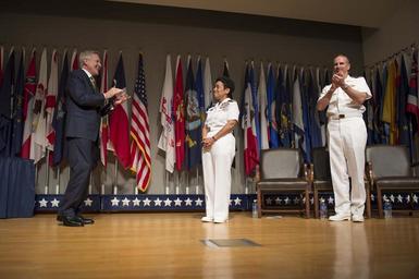 Keywords: Promotion ceremony 140701-N-WL435-270.jpg en Secretary of the Navy Ray Mabus and Chief of Naval Operations CNO Adm Jonathan Greenert applaud Adm Michelle Howard on her promotion to the rank of admiral Tuesday July 1 2014 at the Women in Military Service for America Memorial Howard is the first woman to be promoted to the rank of admiral in the history of the Navy and will assume the duties and responsibilities as the 38th Vice Chief of Naval Operations from Adm Mark Ferguson U S Navy photo by Chief Mass Communication Specialist Peter D Lawlor/Released 2014-07-01 Petty Officer 1st Class Peter Lawlor https //www dvidshub net/image/1430989 140701-N-WL435-270 2014-07-01 22 52 WASHINGTON DC US PD-USGov-Military-Navy Mark E Ferguson III Ray Mabus Jonathan W Greenert in 2014 Images from DoD uploaded by Fæ |