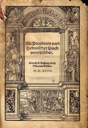 Keywords: Propheten1528-2.jpg Titlepage of Alle Propheten Augsburg edition 1528 Private collection of S Whitehead 1528 Haetzer and Denk Public Domain PD-old-100 Prophets Anabaptism German bibles 1528 books Illustrated title pages from Germany 16th-century woodcuts of people |