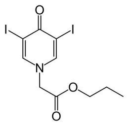 | Keywords: Propyliodone.svg validSVG Skeletal formula of propyliodone Created using http //www acdlabs com/download/chemsk html ACD/ChemSketch 10 0 and Inkscape Own work after KEGG http //www genome jp/dbget-bin/www_bget dr+D01755 D01755 2008-12-01 Fvasconcellos Iodine containing contrast agents Dihydroazines Cyclic ketones Carboxylate esters Propyl esters 4-Pyridones |