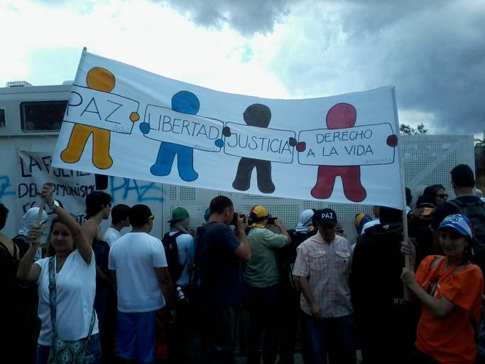 Keywords: Protestors with sign Venezuela 2014.jpg en Opposition protesters holding a sign saying Peace; Freedom; Justice; Right to life es Manifestantes opositores con un cartel Paz; Justicia; Libertad; Justicia; Derecho a la vida 2014-03-16 13 51 13 own Jamez42 cc-zero Uploaded with UploadWizard Demonstrations and protests opposing Bolivarian RevolutionDemonstrations and protests in Venezuela in 2014 |
