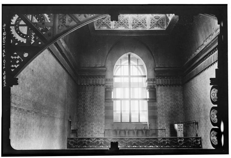 Keywords: ProvidentGothicWindow.jpg en Interior of Provident Life Trust Company Banking House 409 Chestnut Street Philadelphia PA looking south from rear balcony Library of Congress Historic American Buildings Survey http //www loc gov/pictures/item/PA0767/ HABS PA 51-PHILA 256-19 Perry E Borchers HABS photographer 1959 PA 51-PHILA 256-19 PD-USGov Provident Life Trust Company Building |