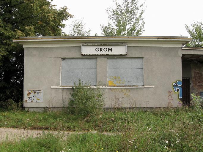Keywords: Przystanek kolejowy w gromie 03.JPG pl Budynek przystanku kolejowego w Gromie w województwie warmińsko-mazurskim own Wesoły Geodeta 2008-09-14 10 00 13 Grom railway station