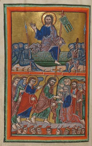 | Keywords: Psalterium Feriatum Cod Don 309 084.jpg Bild aus Psalterium Feriatum Hildesheim bald nach 1235 Württembergische Landesbibliothek Stuttgart Cod Don 309 http //digital wlb-stuttgart de/purl/bsz35289279X after 1235 anonymous PD-old-100 Psalterium Feriatum Cod Don 309 Miniatures of Resurrection of Christ Miniatures of Harrowing of Hell |