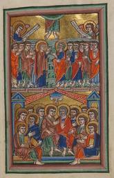| Keywords: Psalterium Feriatum Cod Don 309 085.jpg Bild aus Psalterium Feriatum Hildesheim bald nach 1235 Württembergische Landesbibliothek Stuttgart Cod Don 309 http //digital wlb-stuttgart de/purl/bsz35289279X after 1235 anonymous PD-old-100 Psalterium Feriatum Cod Don 309 Miniatures of Ascension of Christ Miniatures of Pentecost Ascension with vanishing feet |