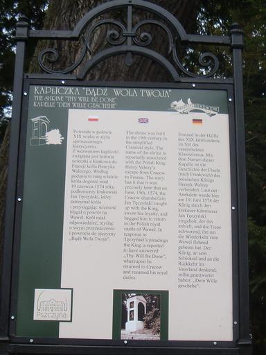 Keywords: Pszczyna Henryk Walezy tablica.JPG pl Tablica przy kapliczce Bądź wola Twoja w Pszczynie own Miezian 2010 Henry III of Poland and France Thy will be done shrine in Pszczyna
