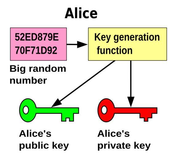 Keywords: Public key making.svg Public-key cryptography / asymmetric cryptography creating a key pair A big random number is used to create a key pair When the keys have been made the big random number is thrown away Without knowledge of the random number it should be impossible to create the private key from the public key In many algorithms it is also impossible to create the public key from the private key once the random number has been thrown away The public key can be freely published to the world Note that most key making functions internally need more than one random number To handle this the big random number usually is fed as a seed to a cryptographically secure random number generator that then produces many pseudo random numbers for the key making function Original illustration by David Göthberg Sweden Released by David as public domain 2006-08-07 own assumed Davidgothberg Other versions See Category Cryptography diagrams for several related diagrams That category is on Wikimedia Commons Public-key cryptography Diagrams in English |