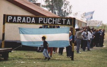 Keywords: Pucheta.jpg es Estación del FF CC own Cjavip FoP-Argentina Train station signs in Argentina Photographs of flags of Argentina People at train stations Parada Pucheta train station