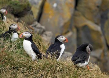 Keywords: puffin bird seevogel iceland coast funny cliff