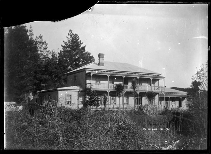| Keywords: blackandwhite monochrome photo border outdoor building architecture serene black and white View of the Puhoi Hotel, a two storey wooden building with verandahs along the front on both levels. In the foreground are brambles and other low vegetation. Cabbage trees are growing near the front of the the hotel. Photograph taken 1900-1930 by William Archer Price. Inscriptions: Inscribed - Photographer's title on negative -bottom right: Puhoi Hotel. No 1966. Quantity: 1 b&w original negative(s). Physical Description: Dry plate glass negative 4.5 x 6.5 inches Puhoi Hotel. Price, William Archer, 1866-1948 :Collection of post card negatives. Ref: 1/2-000151-G. Alexander Turnbull Library, Wellington, New Zealand. natlib.govt.nz/records/22785071 View of the Puhoi Hotel, a two storey wooden building with verandahs along the front on both levels. In the foreground are brambles and other low vegetation. Cabbage trees are growing near the front of the the hotel. Photograph taken 1900-1930 by William Archer Price. Inscriptions: Inscribed - Photographer's title on negative -bottom right: Puhoi Hotel. No 1966. Quantity: 1 b&w original negative(s). Physical Description: Dry plate glass negative 4.5 x 6.5 inches Puhoi Hotel. Price, William Archer, 1866-1948 :Collection of post card negatives. Ref: 1/2-000151-G. Alexander Turnbull Library, Wellington, New Zealand. natlib.govt.nz/records/22785071 |