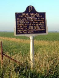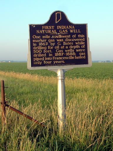 Keywords: Pulaski County natural gas marker.png 40 57 46 8 N 86 53 30 W region US-IN_heading SW A historical marker in southwestern Pulaski County Indiana documenting the site of the state's first natural gas well Marker is located on the western side of U S Route 421 one and a half miles south of the town of Francesville Indiana Francesville It reads <blockquote> First Indiana Natural Gas Well<br /> One mile southwest of this marker gas was discovered in 1867 by G Bates while drilling for oil at a depth of 500 feet Gas wells were drilled in 1887-1888; gas piped into Francesville lasted only four years </blockquote> Own 2007-06-14 Huw Williams Huwmanbeing Files by User Huwmanbeing Historical markers in Indiana Natural gas Pulaski County Indiana |