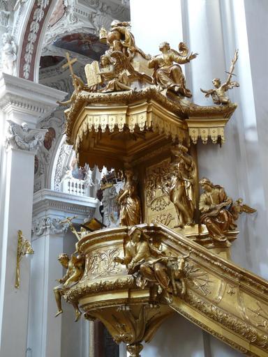 Keywords: pulpit golden gilded dom st stephan passau baroque bishop church church episcopal see passauer stephansdom st stephan's cathedral