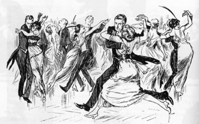 Keywords: Punchtango72.jpg en Drawing from Punch magazine humorously depicting couple dancing the tango Quirey 1976 May I have the pleasure The story of popular dancing p80 Author s 1920 PD-Art PD-Art Tango dance Dance in art 1920s fashion 1920s art Punch magazine cartoons |