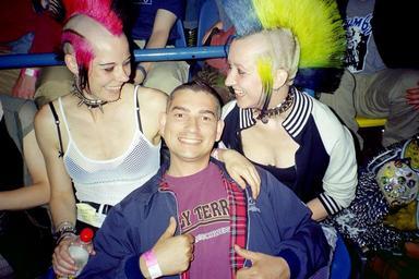 Keywords: Punk Girls Morecambe 2003.jpeg Punk Girls Morecambe 2003 2003 own <br> First uploaded to de-Wikipedia by de Benutzer Calzinide as de Bild Punkgirls jpg de Benutzer Calzinide de German Wikipedia Calzinide Fashion in 2003 Mohawk Punk fashion Colorful hair Female pink hair Both thumbs up Purple T-shirts |