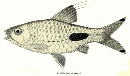 Keywords: Puntius filamentosus Thomas.jpg Barbus filamentosus Puntius filamentosus <small> Valenciennes 1844 </small> The Rod in India 1897 Creator Henry Sullivan Thomas pd-old PD-old Henry Sullivan Thomas Dawkinsia filamentosa