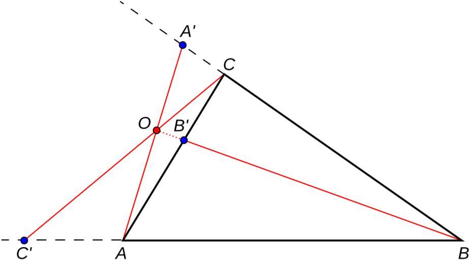 Keywords: Punto ceviano esterno.svg Punto ceviano esterno esterno al perimetro del triangolo Own 2008-02-14 Personline Ceva's theorem