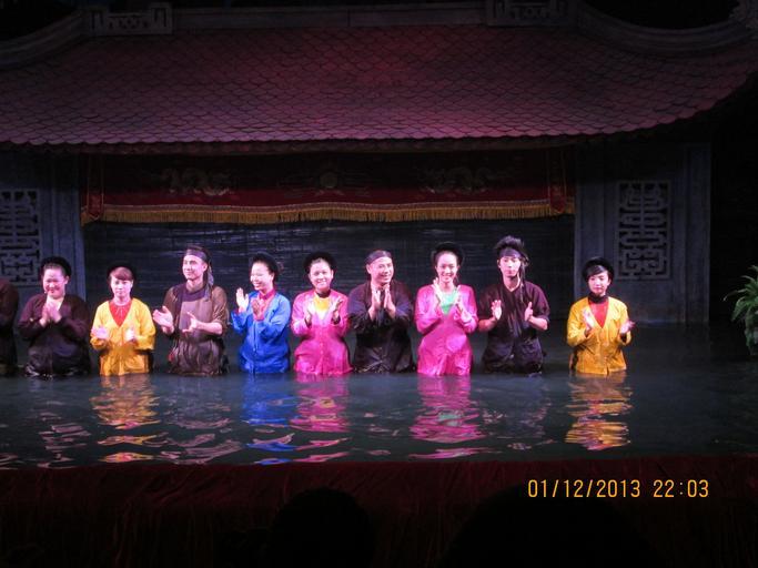 Keywords: Puppeteers of Thang Long puppet show..JPG en End of the Puppet Show and a farewell by the actors who control the puppets own Rudolph A Furtado Sunday 1-12-2013 Thang Long Water Puppet Theatre Cc-zero