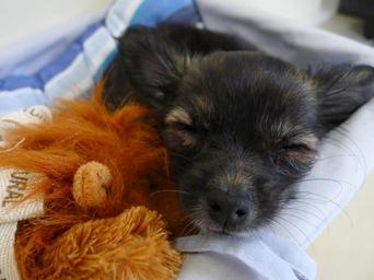 Keywords: puppy cute chihuahua dog pet animal sleeping adorable best friend tired sweet basket