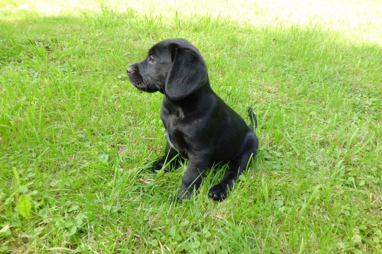 Keywords: puppy labrador dog cute black meadow beautiful small young