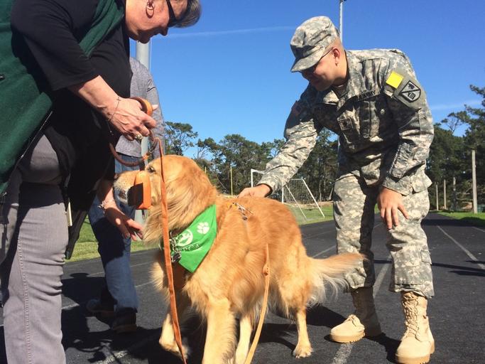 Keywords: presidio pom public_affairs publicaffairs monterey dli dliflc defense_language defenselanguage foreign_language foreignlanguage military language foreign defense community community_relations communityrelations california ca calif dod joint education school ready resilient ready_and_resilient readyandresilient resiliency 229th military_intellegence militaryintellegence intelligence foxtrot f_co fco family_readiness familyreadiness frg family readiness dog dogs mascot lingo humane humane_society humanesociety monterey_county montereycounty spca usa outdoor Foxtrot Company, 229th Military Intelligence Bn., brought the SPCA of Monterey County "Hug a Pet" team and a hot dog lunch to Defense Language Institute Foreign Language Center students and staff at the to Presidio of Monterey's Hilltop Track Nov. 9, 2016. Three dogs adopted from the shelter, two certified therapy dogs, and Pfc. Lingo - the school's mascot - spread "puppy love" to raise morale for service members, many of whom live in the barracks where they are not allowed to care for pets while completing military language training at the school. DoD photo by Catherine Caruso, Presidio of Monterey Public Affairs. Foxtrot Company, 229th Military Intelligence Bn., brought the SPCA of Monterey County "Hug a Pet" team and a hot dog lunch to Defense Language Institute Foreign Language Center students and staff at the to Presidio of Monterey's Hilltop Track Nov. 9, 2016. Three dogs adopted from the shelter, two certified therapy dogs, and Pfc. Lingo - the school's mascot - spread "puppy love" to raise morale for service members, many of whom live in the barracks where they are not allowed to care for pets while completing military language training at the school. DoD photo by Catherine Caruso, Presidio of Monterey Public Affairs.