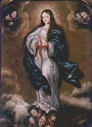 Keywords: Purísima Concepción, del círculo de Antonio del Castillo (Museo de Bellas Artes de Córdoba).jpg La obra representa la Inmaculada Concepción de la Virgen María madre de Jesucristo y es una obra del círculo del pintor Antonio del Castillo y Saavedra aunque también es atribuida dudosamente a Fernando Molina Sandoval circa 1667 1669 oil on canvas Size cm 96 140 Institution Museo de Bellas Artes Córdoba http //ceres mcu es/pages/Main accession number CE2298P http //ceres mcu es/pages/Main PD-old-100 Paintings of Immaculata in Spain 17th-century paintings of Immaculata Circle of Antonio del Castillo Paintings by Antonio del Castillo in the Museum of Fine Arts of Córdoba Paintings of saints in the Museum of Fine Arts of Córdoba 17th-century paintings in the Museum of Fine Arts of Córdoba |